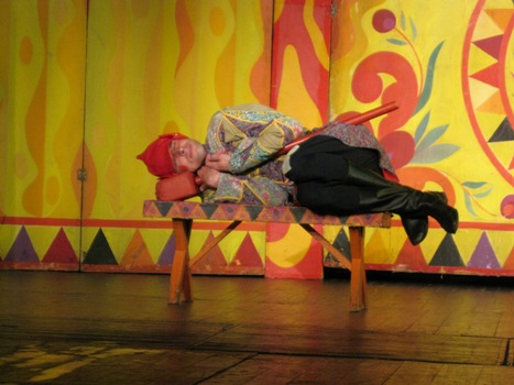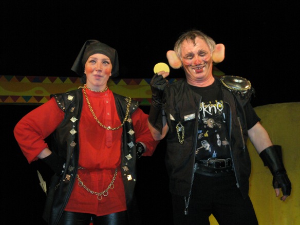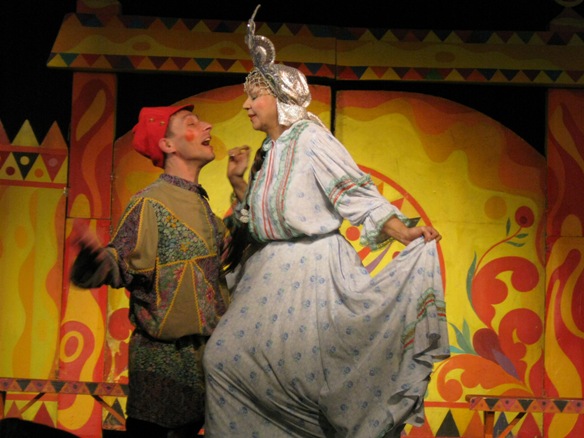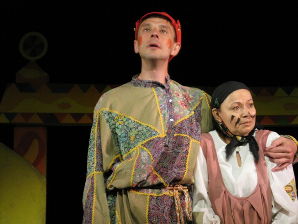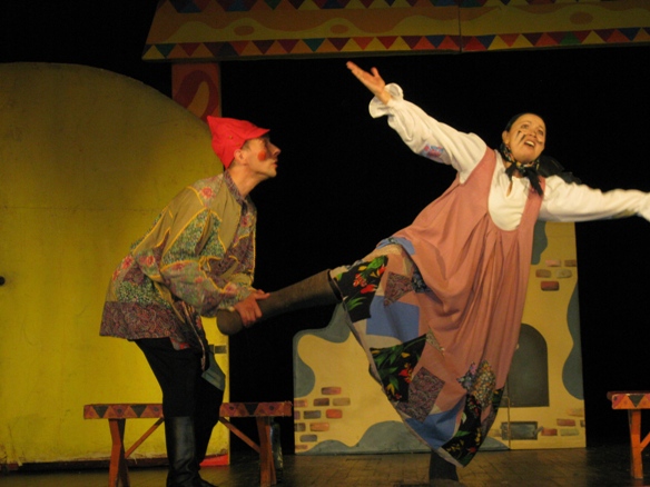 Когда залы были совсем маленькими, играли практически без декораций: два столба, две занавески. Играли на полянах, в парке, даже под дождем. Бывало, попадали в такие холодные залы, что пар шел изо рта. У Владимира Зеленова однажды прихватило позвоночник. А надо было Бабу Ягу к Змею Горынычу на руках нести. Так он на сцену на скейтборде выкатился. Поместил туда бабу Ягу и поехали. А однажды, приехав в деревню, обнаружили, что кофр с костюмами забыли взять. Возвращаться – поздно. Подняли из постели завклубом. Открыли склад. И нашли костюмы. Федора-кузнеца одели солдатом. Кащею Бессмертному на водолазку нашили ребра из фольги. А Бабе Яге пришлось в костюме Снегурочки выходить (в финале она превращается в Елену Прекрасную). Дети целый час провели в ожидании. В итоге спектакль прошел на ура.