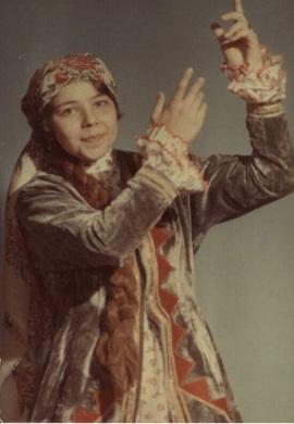 Страсть к преображению и перевоплощению зародилась в ней уже в юные годы (татарский танец в школьной самодетельности)