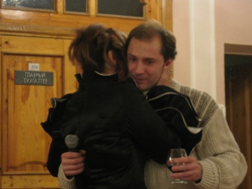 Объятия многолетних партнеров (тост за юбиляршу от Олега Барышева)