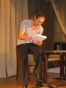 31 октября в 13 - 00 на сцене Дома актера - была проведена читка пьесы челябинского драматурга Егора Черлока "Ипотека и вера мать ее". Режиссер Олег Хапов. В читке участвовали актеры Петр Артемьев, Виктория Бухарина, Надежда Зуева, Антон Ребро.