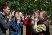 Всегда приятно что-то сделать своими руками. Спектакль – не исключение. Вместо того, чтобы покупать в магазине свистульки, давно ставшие своеобразным народным инструментом, режиссер и актеры рискнули и попробовали сделать их сами. Звукорежиссер и актриса Валентина Спирёва в свое время преподавала «Декоративно-прикладное творчество» в Академии культуры и искусства, так что техникой создания свистулек владеет. Она и провела мастер-класс на Алом поле. В итоге, хоть и не без труда, вылепленные собственными руками свистульки запели. А актеры, объединенные общим делом, иначе посмотрели друг на друга, возникло столь ценное в творческом процессе ощущение общности.
