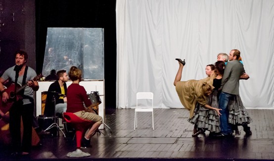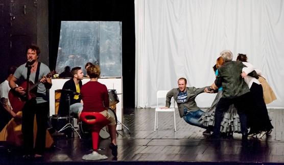 Репетиции сатирической комедии, да еще и гротесковой, дело не простое, требуют от актера полной самоотдачи, терпения, физической выносливости и гибкости.