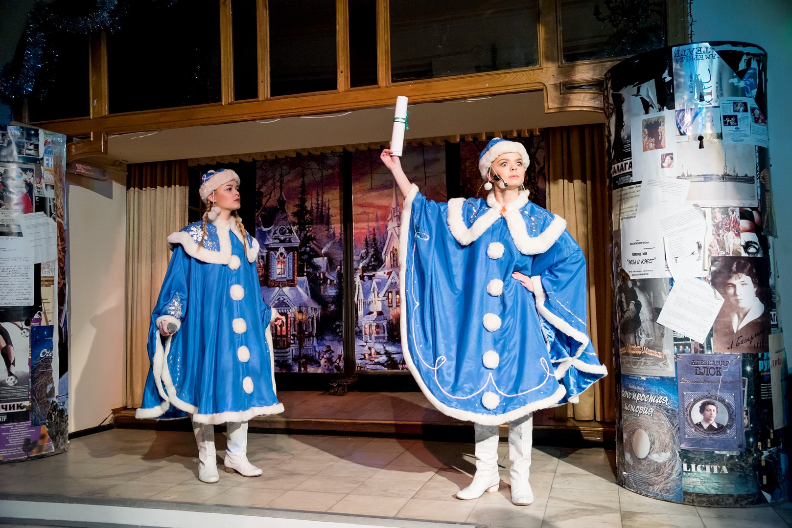 Представления начинались в празднично украшенном фойе с интермедией у новогодней ёлки.