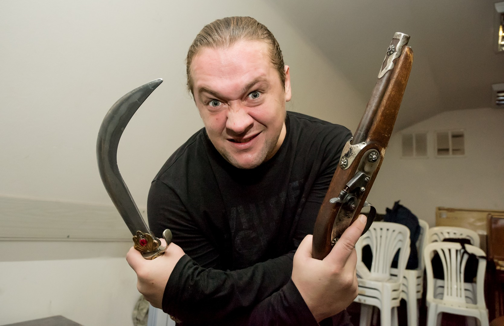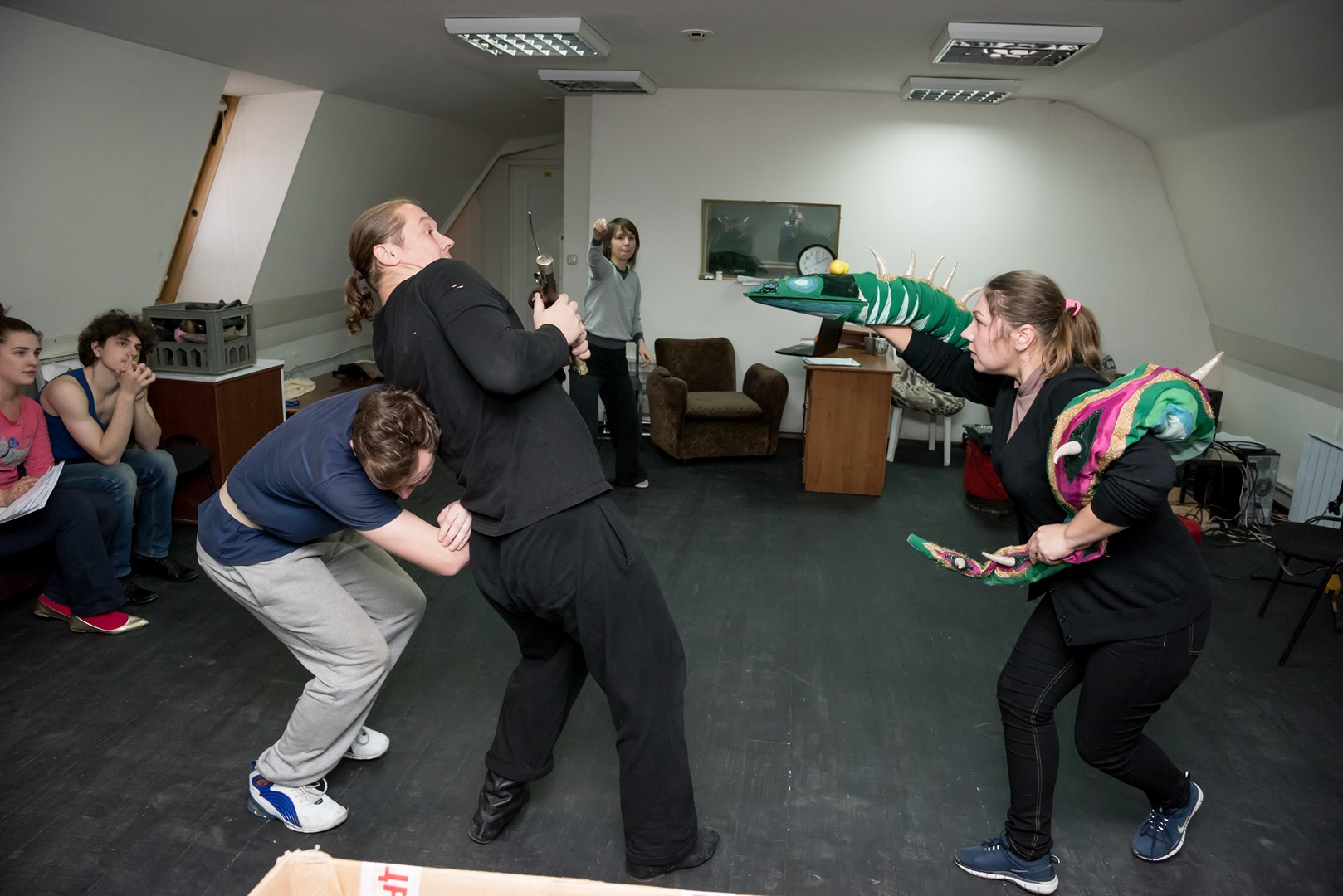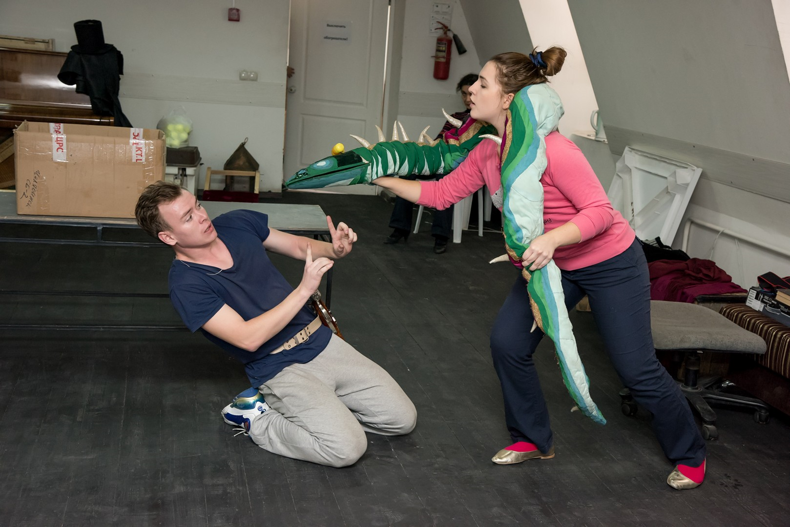 Кроме пиратов и призраков действующими лицами спектакля станут цирковые артисты. А участниками – не только актеры театра, но и выпускники театрального отделения ЧГАКИ курса Виктории Мещаниновой. «Нам повезло: одна из студенток , занятых в спектакле, действительно занималась в цирковой студии. Вот и родилась мысль – почему бы ни включить в спектакль цирковые номера. Так что теперь участники репетиций еще и учатся жонглировать», - рассказал постановщик Олег Хапов. Цирковые навыки необходимо приобрести всего за месяц, что вряд ли возможно без консультации настоящих артистов цирка. Такими консультантами для театра стали художественный руководитель артгруппы Арена74 Сергей Парватов и артистка цирка Елена Бахарева. А основная нагрузка по работе с участниками спектакля легла на хореографа Юлию Репицину.