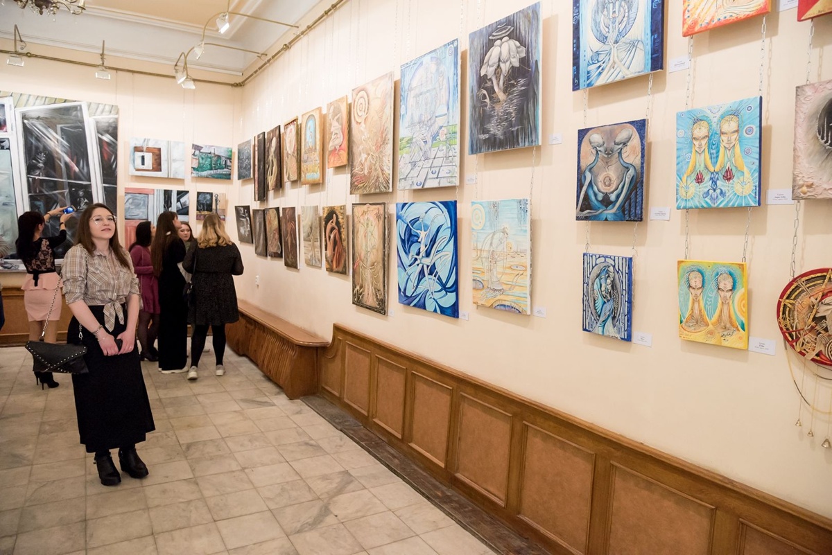 Вторая часть выставки – НАШ КОСМОС. Про умение видеть. Видеть что-то большее чем окружающее нас пространство. Создает в своих работах ни на что не похожие, абсолютно уникальные миры и пространства. Урман обучалась и работала в Челябинске. Она раскрывает тематику нашего внутреннего космоса: наши переживания, наши состояния в определённые моменты времени, трансформации нас как личности в течении жизни, в общем все что можно отнести к нашему внутреннему космосу.