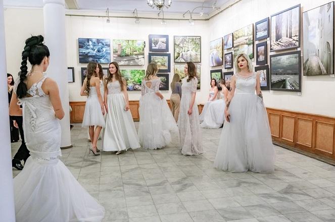 , на импровизированном подиуме дефилировали девушки в белых платьях.