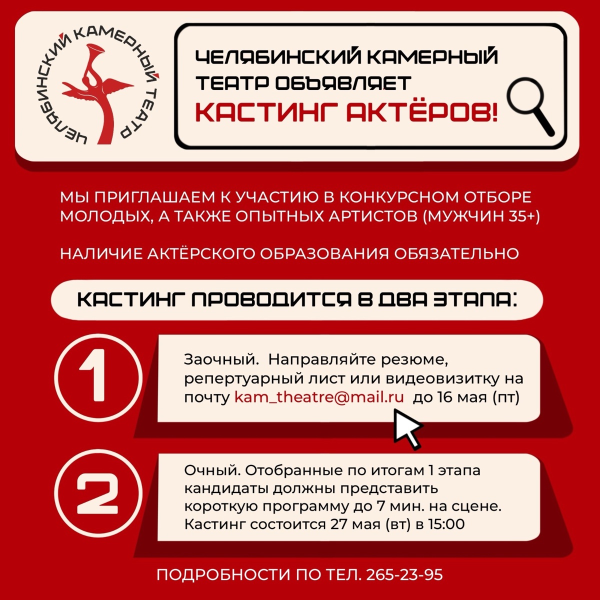 на официальную почту театра до 16 мая 2025 года - kam_theatre@mail.ru