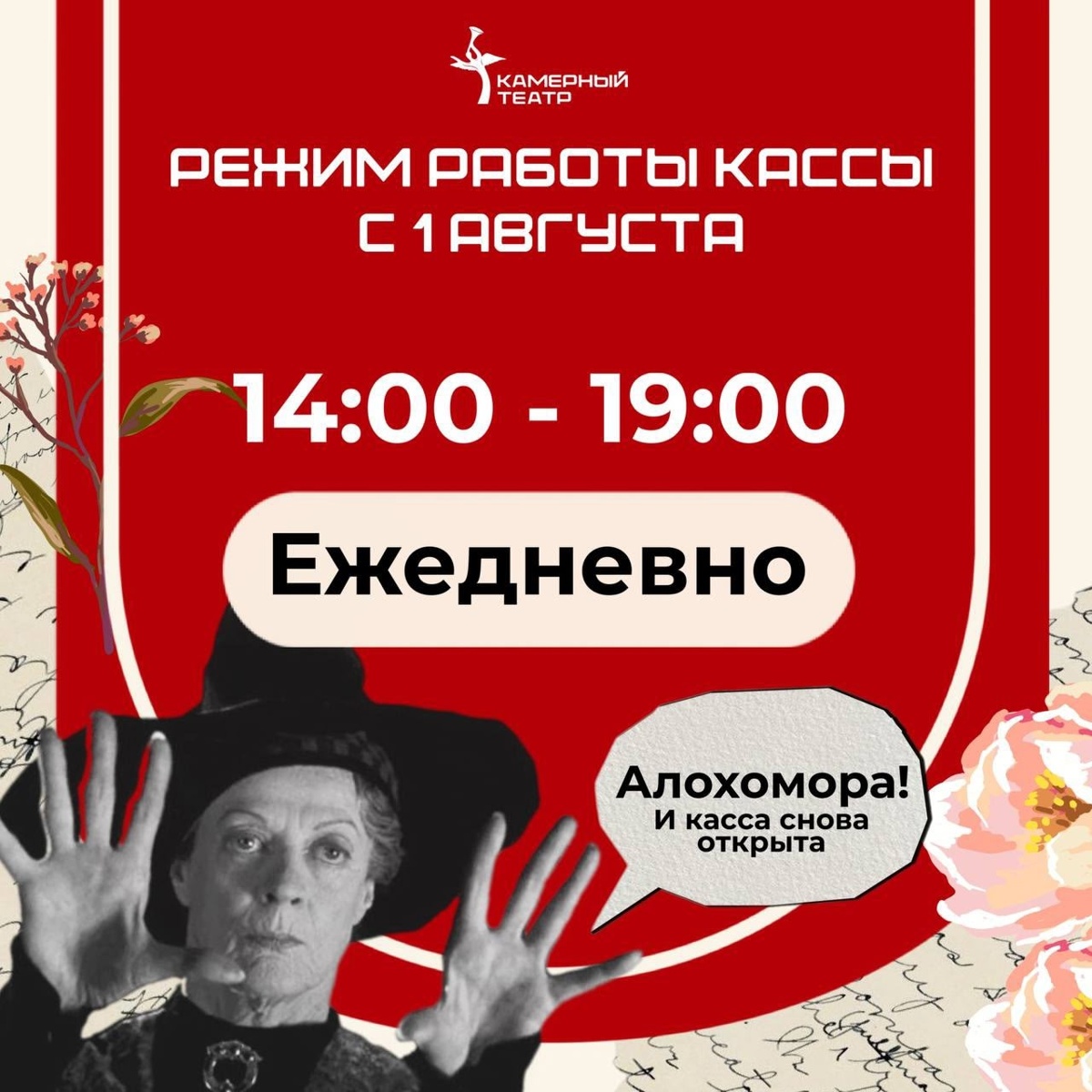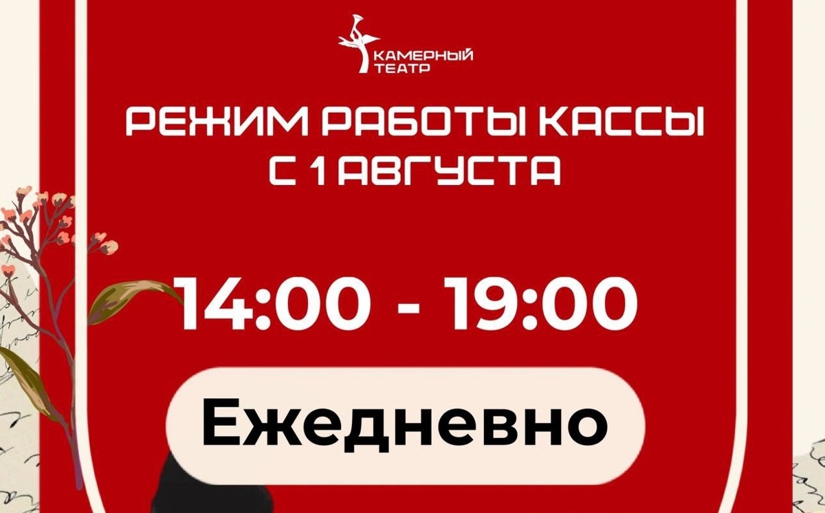 С 1 августа касса Камерного театра возвращается в привычный режим работы.