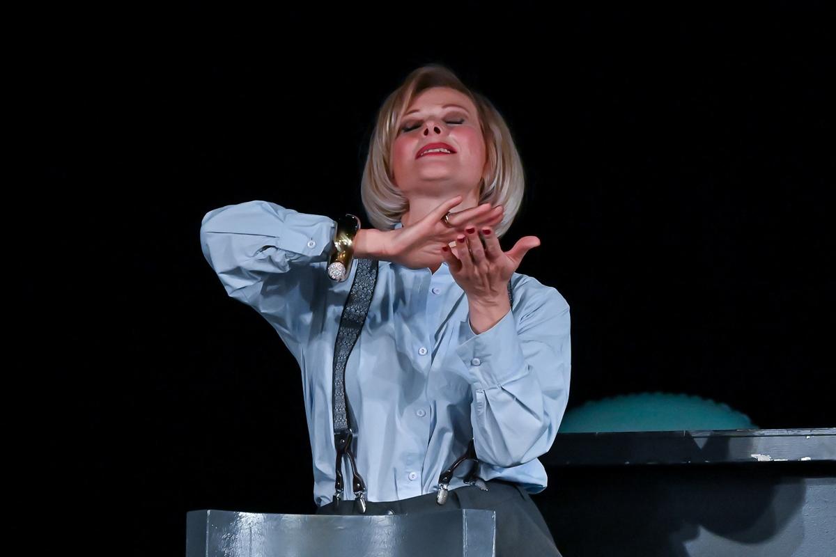 Церемония открытия завершилась, декорации по волшебству сменились, и вот уже героиня Марины Кондратьевой встречает зрителей на сцене! Начался спектакль «Монолог для двоих»!