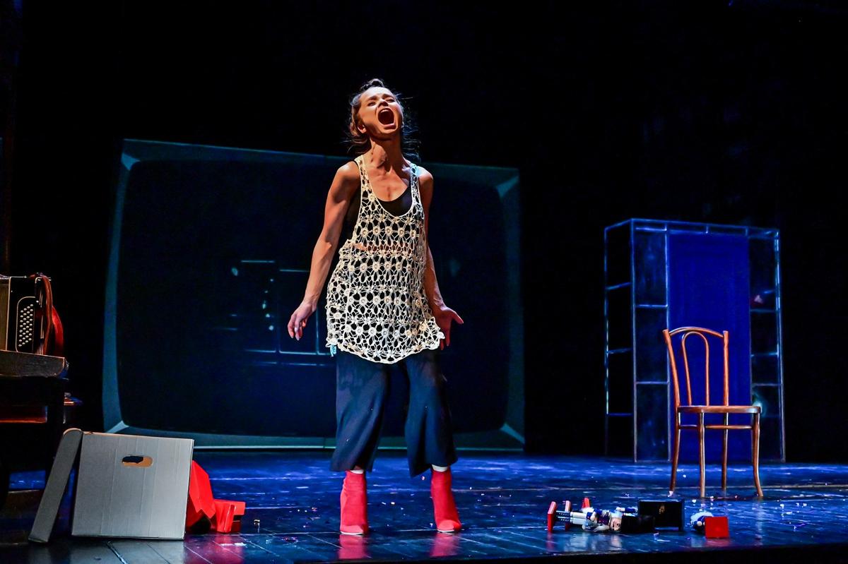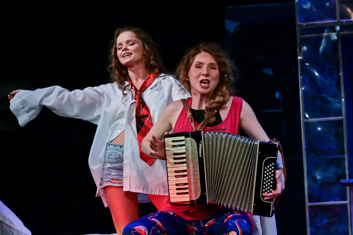 Эту песенку-колыбельную белорусской актрисы и певицы Светы Бень (легко нагуглите, если не слышали) поет Валентина, подыгрывая себе на аккордеоне. Текст жуткий, и его отчетливо слышно: актрисы в Камерном прекрасно поют. Валентина начинает наигрывать как что-то успокоительное, будто ребенку перед сном, но из маминой колыбельной песня становится смертельным пророчеством.