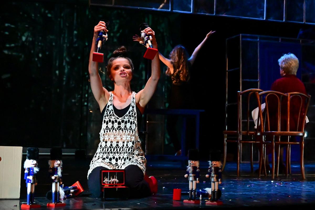 Наглотавшись бабушкиного снотворного (которое, к счастью, оказалось витаминками), Любочка вытащит из коробки наполеоновских солдатиков. Построит их в ряд и станет играть в войну. В это время по черно-белому телевизору, размером с задник, балерины будут танцевать танец маленьких лебедей — но только не под музыку Чайковского, а под детскую песенку про день рождения. И будут точно попадать прыжками в такт.
