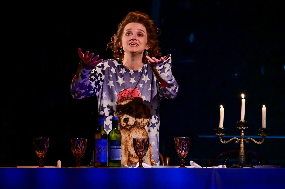 Виктория Николаевна Мещанинова перед пресс-показом предупредила, что в спектакле два акта, и второй совершенно не похож на первый. Когда зрители будут обмениваться впечатлениями после финала, главным вопросом будет: «Это что, есть в тексте пьесы? Точно? Это Разумовская так написала? »