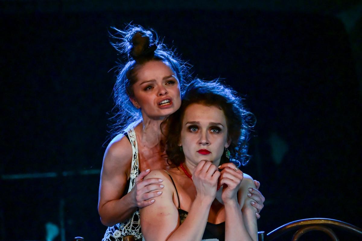 Отсутствие личного пространства, беззащитность, грубое вмешательство в жизнь Виктория Мещанинова подчеркивает самым отважным образом: героини переодеваются прямо на сцене. Разоблачаются до трусов, не прячась ни за ширму, ни за створку шкафа. А чего скрывать? Цвет трусов?